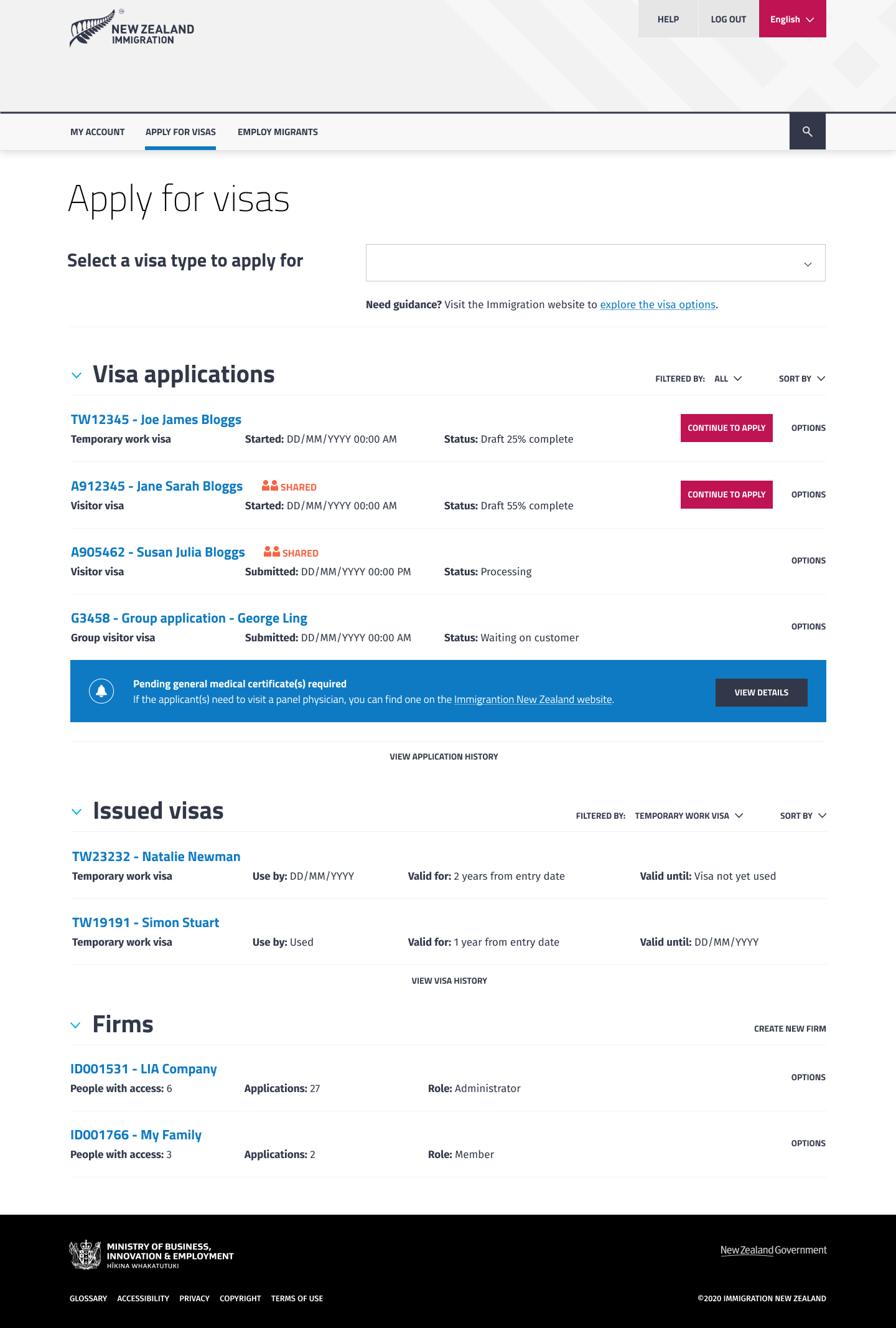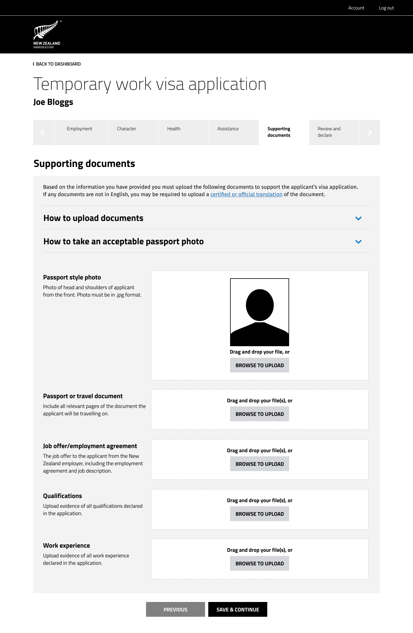 I was brought on to start the UX design and direction, form logic, and strategy for their new front-end visa application. Also designs for staff-facing processing systems in the Microsoft Dynamics 365 environment.